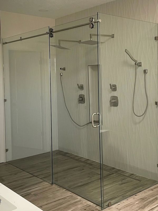 Experience unparalleled elegance with our heavy glass European style custom shower doors in Trinity, Tx. As a leading shower door company in East Texas, we specialize in glass shower doors, glass doors for showers, and glass shower enclosures crafted from premium tempered glass with luxe hardware. From seamless shower doors to precise shower door installation and replacement, we’re your trusted residential shower door specialists. Contact us for a free in-home consultation and a no-obligation quote.